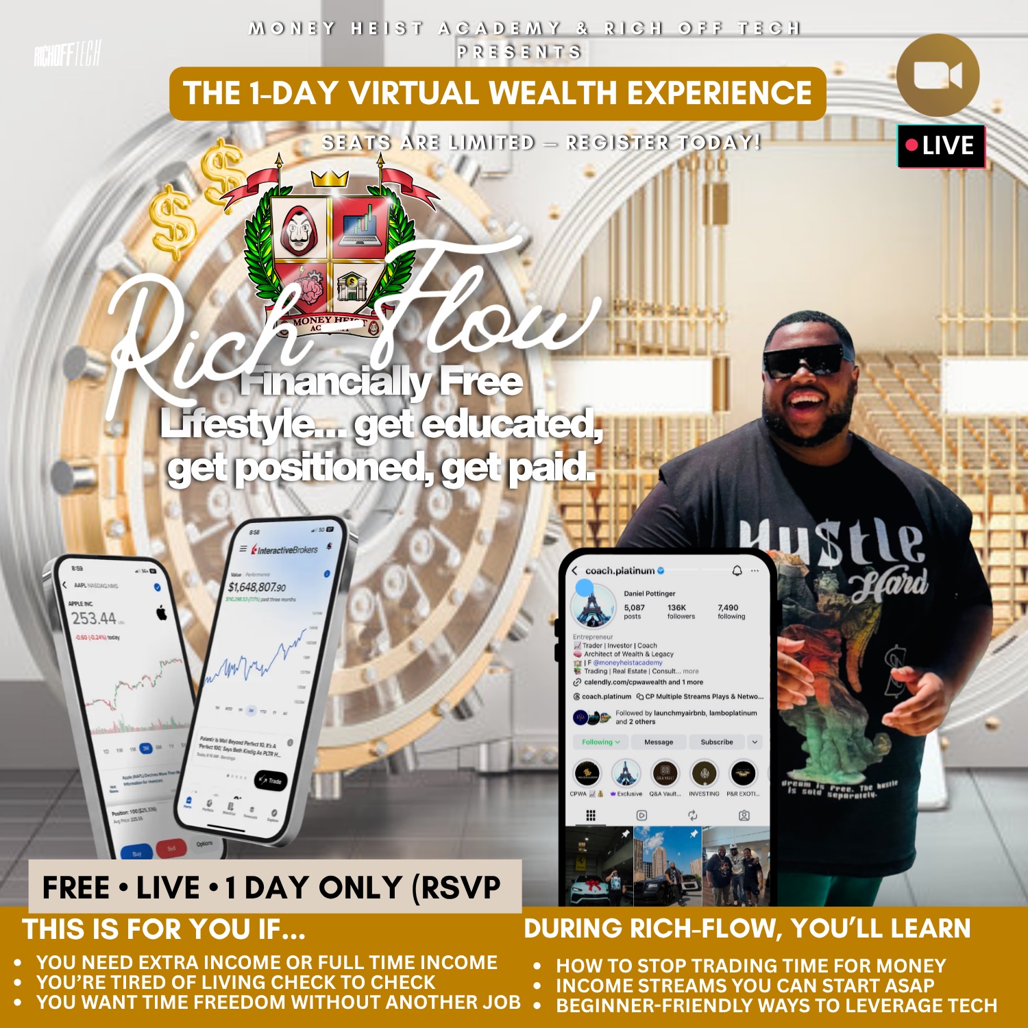 As the founder of the Coach Platinum Wealth Accelerator (CPWA) & Money Heist Academy, he is passionate about teaching everyday individuals how to leverage trading, real estate, and digital opportunities to generate income directly from their phone. The goal is to turn knowledge into execution and execution into results.
